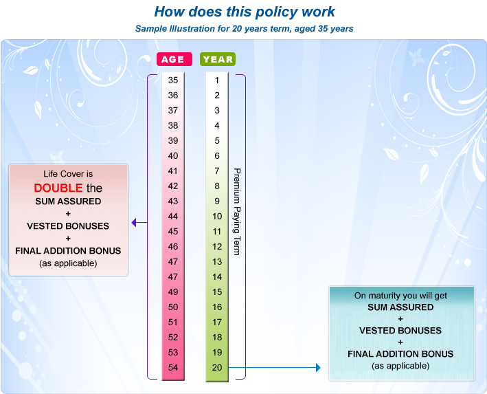 - MATURITY - Sum Assured + Bonus + Final Addition Bonus (as applicable) will be paid.