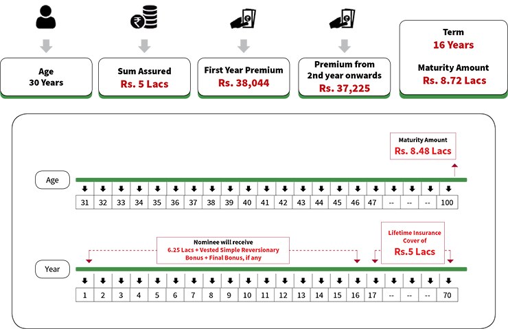 - The customer gets the tax-free maturity under this plan which includes the bonus also along with Sum Assured.