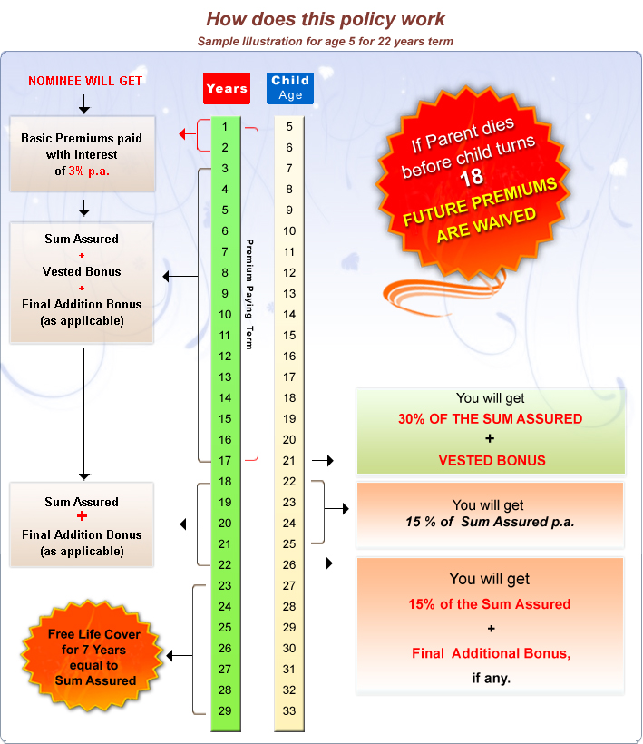 - In-built Premium Waiver Benefit. All balance premiums waived if parent dies before the premium paying term ends