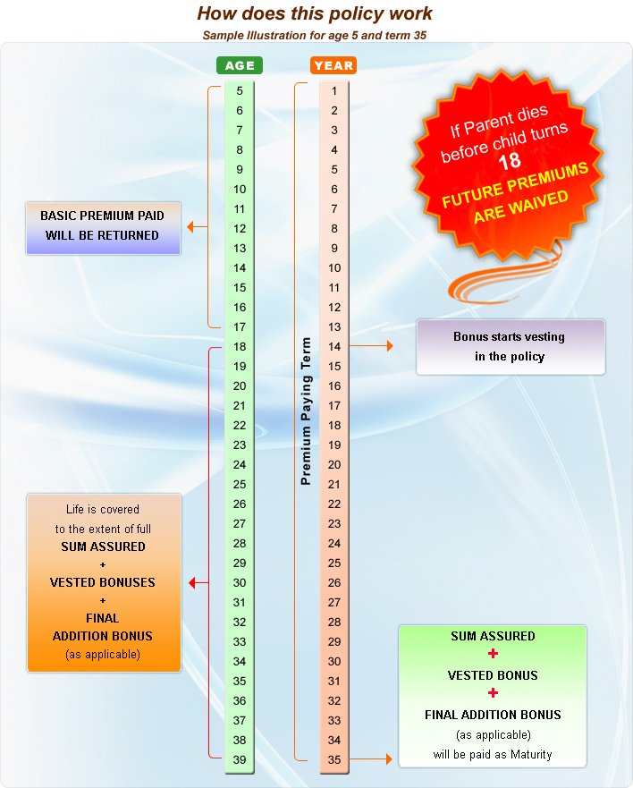 is a best plan for child and his/her parent to secure a decent amount at a given age with a comparatively low premium.