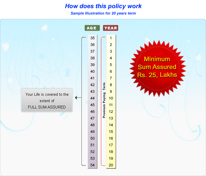 In case of unfortunate death of the Life Assured during the policy term, sum assured shall be payable.