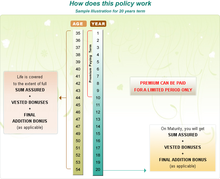 - MATURITY - Sum Assured + Bonus + Final Addition Bonus (as applicable) will be paid.